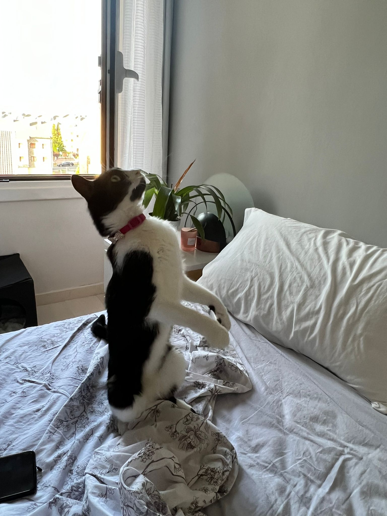 Es tan feliz, que ha desarrollado facetas que desconocíamos! Su papi nos dice que es un gato alucinante que sabe hacer un montón de cosas. Además sale de paseo con arnés y viaja en coche tan contento. Cuánto nos alegramos por Yeti!!