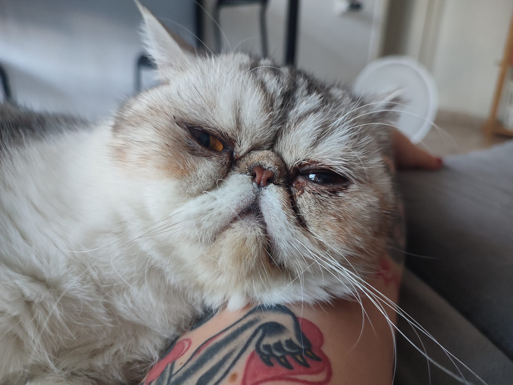 Yeti es otro de los cinco hermanitos recogido en estado lamentable esparcidos por la calle. Es un guaperas plateado de ojos azules preciosos, que sin embargo (y seguramente por eso mismo) tuvo muy mala suerte con el proceso de adopción.