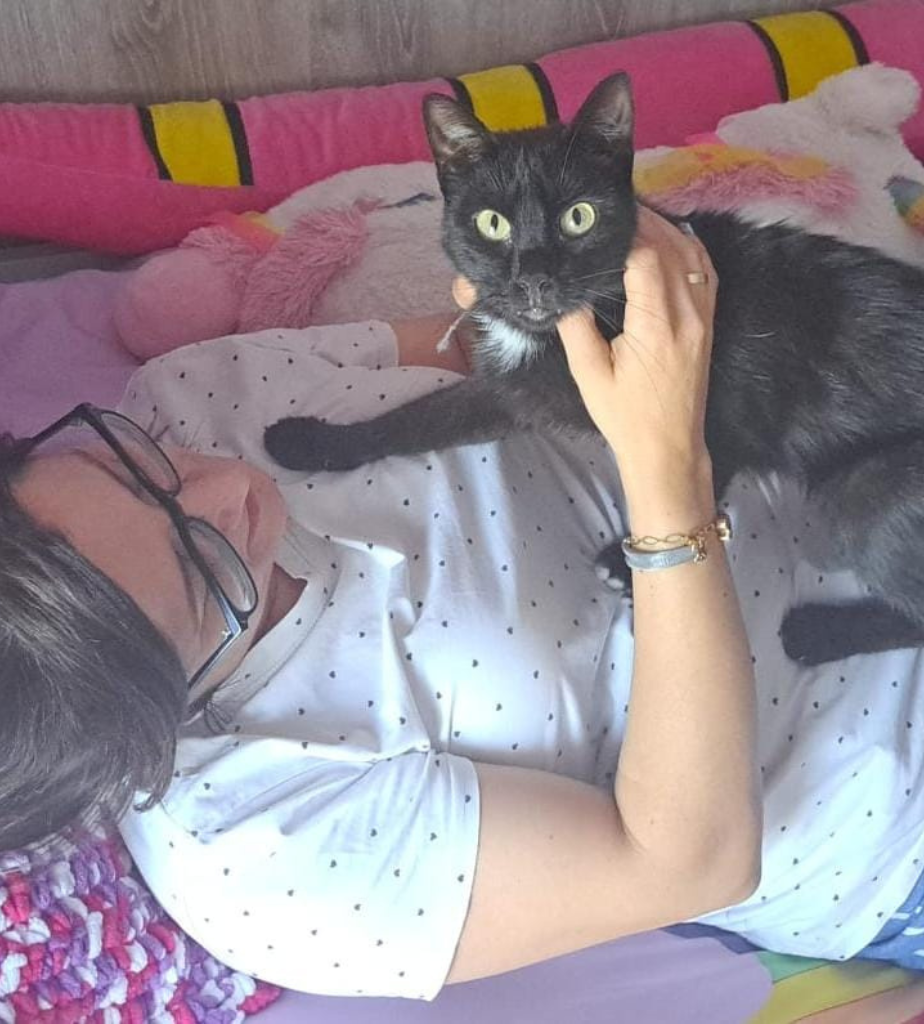 Sufragamos todos los costes de los tratamientos, la alimentamos y la curamos, y le encontramos un maravilloso hogar junto a Carla, porque en la Asociación Fiona estaba muy triste y apagada.